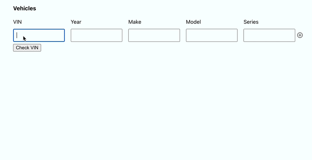 -1, all fields for vehicle two end with-2. The VIN field uses two classes separated with a spacevin-check vehicle-vin-1.